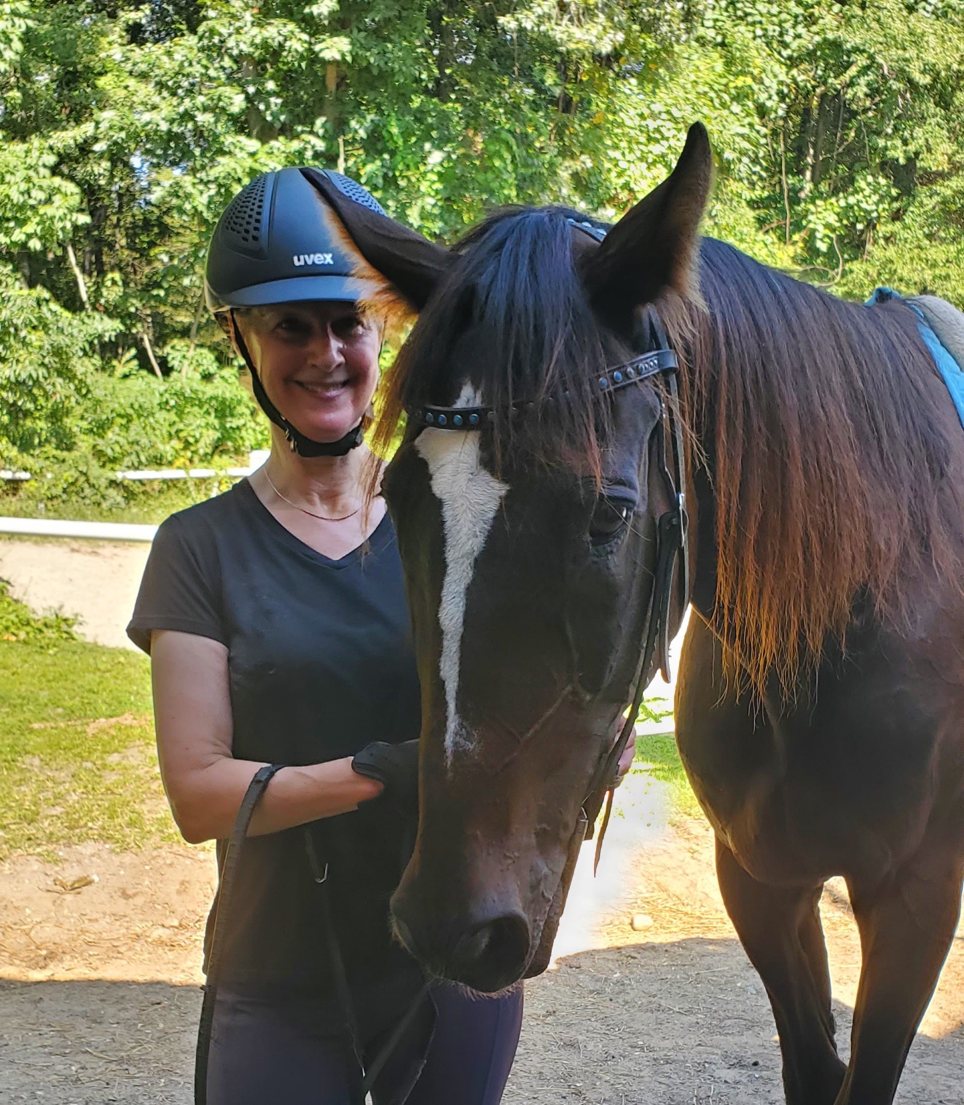 He was tallish, dark, and slender, and in his late twenties when we met. Sports Theory was a former racehorse, and the schooling horse I rode for my first couple years back at riding lessons. Sport, as he was known around the barn, had belonged to the mother of my gymnastics teacher growing up. Miss June had ridden him into her 70s and gifted Sport to my trainer, Rich, during the pandemic. That Rich accepted the cost and responsibility of an additional horse when his livelihood was precarious tells you everything about his heart.